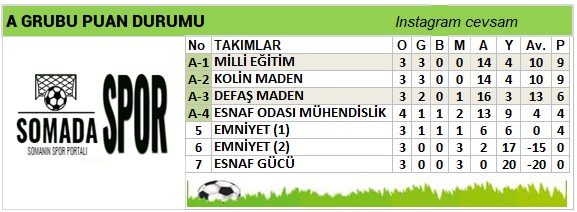 • C Grubu: Soma Milli Eğitim ve Nakliyeciler, üçüncü haftayı puansız kapattı.