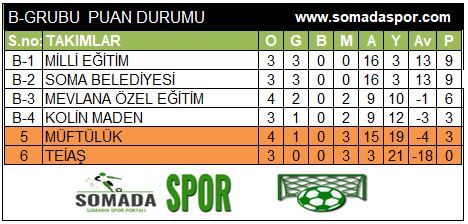 2-0'lık Kolin Maden galibiyeti ile puanını 6'ya yükselten Mevlana Özel Eğitim Meb, grupta 3.sıraya yükseldi. 3 Puanda kalan Kolin Maden ise 4.sıraya geriledi.