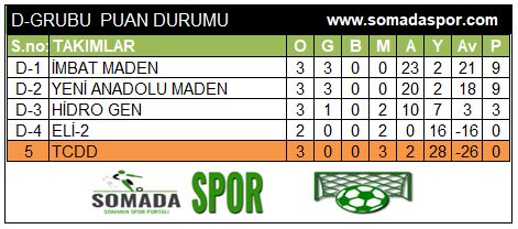 Yusuf İpek idaresindeki İmbat, bu haftanın en gollü karşılaşmasına imza atarken, Tcdd filelerini altı kez havalandıran Tolga Meral maçın yıldızı oldu. İmbat Maden'i Tcdd önünde farklı galibiyete taşıyan golleri Tolga Meral (6), Erhan Güleç (2), Murat Aksoy ve Mutlu Günaydın kaydetti. Maçta Tcdd adına tek golü ise Hasan Bakırlı uzak mesafeden attı.