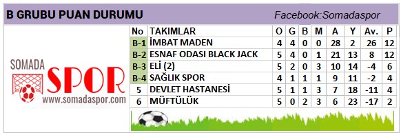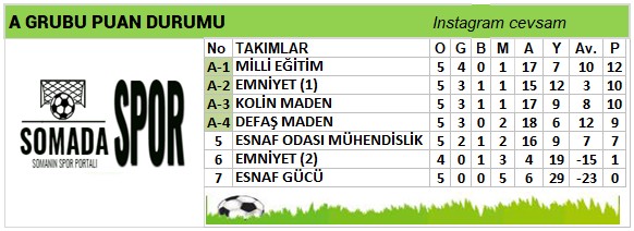 Not: Dün oynanan Defaş Maden-Soma Mühendislik maçında Defaş'ın kırmızı kartlar sonrası oyuncu sayısı yedinin altına düştüğü için maç Soma Mühendislik lehine 3-0 tescillendi.