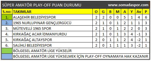 9 golün atıldığı Manisa Süper Amatör Lig Play-Off karşılaşmalarda alınan toplu sonuçlar, puan durumu ve kalan maçların programı şöyle: