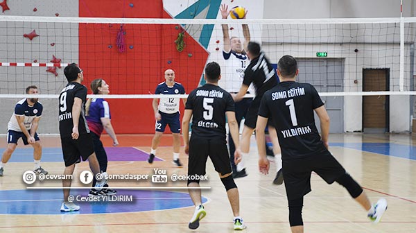 Soma Kaymakamlık Voleybol Turnuvası 5. hafta ikinci gün maçları A ve B grubunda oynanan iki karşılaşmayla devam etti. A Grubu'nda Soma Eğitim, Kaymakamlık takımını 3-1 yenerek eleme grubu maçları için büyük şans yakaladı. B Grubu'nda Soma Çimento, Orman İşletme 2 karşısında rahat bir galibiyet alarak liderliğini pekiştirdi.
