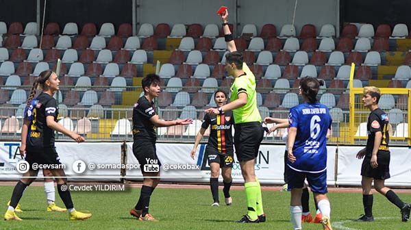 İkinci yarının 48.dakikasında Kayseri Kadın Futbol takımından Bahar Özen, rakibine arkadan kasıtlı tekme atınca karşılaşmanın orta hakemi Cenk Vardar tereddütsüz kırmızı kartını çıkardı.