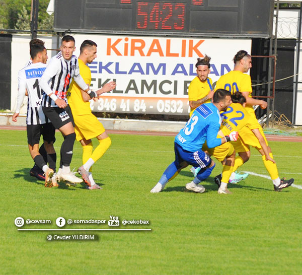 19 dakikada Somaspor yüzde yüzlük bir ataktan daha yararlanamadı derken ceza sahası çizgisine gelen topu Erkan Şentürk kalecinin uzanamayacağı köşeye çok güzel vurdu ve tabelayı Somaspor lehine 1-0 a getirmiş oldu. Kalan dakikalarda Somaspor üstün olsa da girdiği posizyonlardan yararlanamayınca ilk yarının skoru Somaspor lehine 1-0 bitmiş oldu.