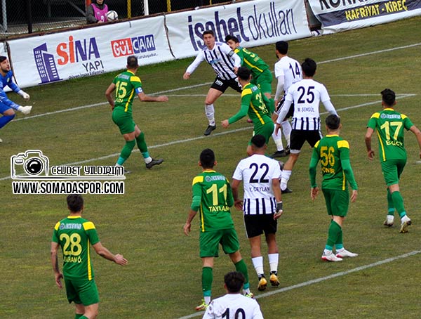 Konuk ekibe galibiyeti getiren golleri; 4.dakikada Cengizhan Akgün, 32.dakikada Taylan Özgün ve 79.dakikada Oğuzhan Öztürk kaydetti. Ev sahibi takımın tek golünü ise 68. dakikada Özcan Aydın kaydetti. Somaspor'dan Onur Ulaş 83.dakikada ikinci sarıdan kırmızı kartla oyun dışı kaldı.