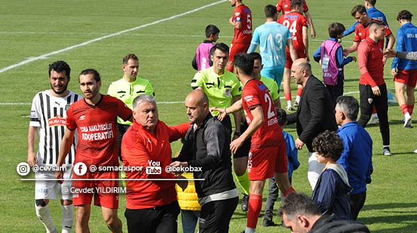 İlk yarısı golsüz kapanan karşılaşmada Somaspor, ikinci yarıda siyah-inciler taraftar grubunun desteğini arkasına alarak sergilediği akıllı taktik anlayışı, rahat futbol ile, Emrecan Bulut ve Yusuf Türk’ün golleriyle Nazilli Belediyespor’u 2-0 mağlup etti.