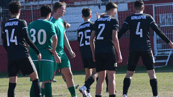 TFF Bölgesel Gelişim U19 Ligi’nin ikinci devresinin son haftasında Linyit Stadı’nda Somaspor U19 ile Fethiyespor U19 karşı karşıya geldi. Maça hızlı başlayan ev sahibi ekip, 5. dakikada Emirhan Aşık, 15. dakikada Mustafacan Sarcan ve 19. dakikada Emirhan Aşık’ın ikinci golüyle skoru 3-0’a getirdi.