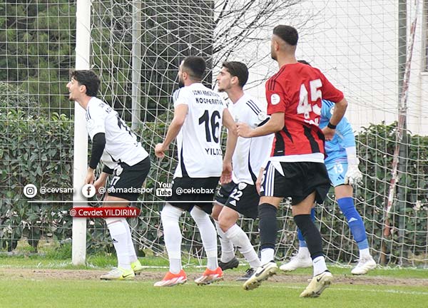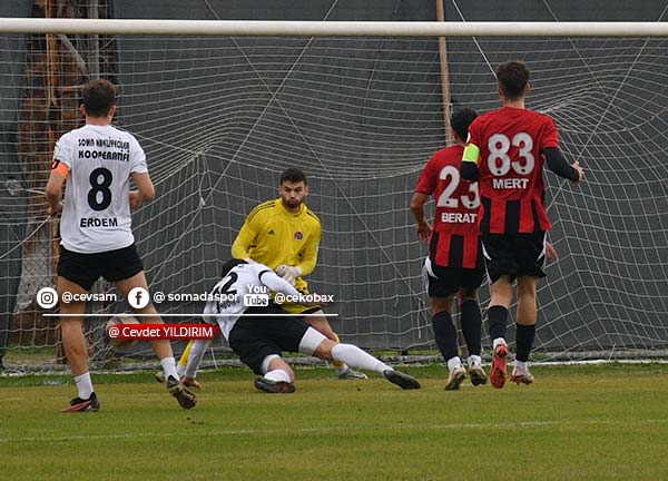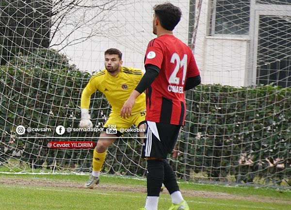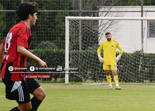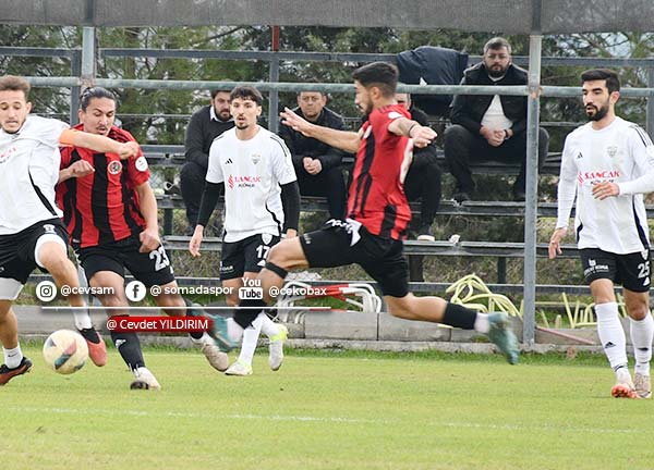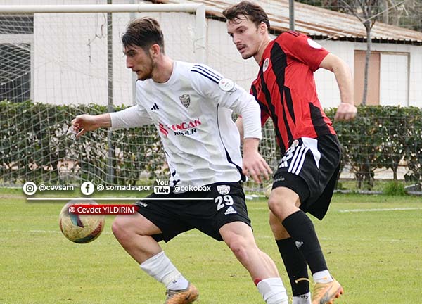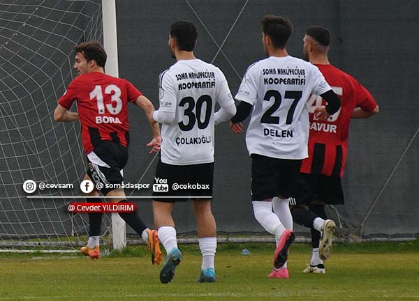 Maçın ilk düdüğünden itibaren Somaspor, oyunu rakip yarı alana yıkmaya çalıştı. Mücadelenin 25. dakikasında sağ kanattan Kadir Karış’ın şık pasında ceza sahası içinde topu kontrol eden Yusuf Delen, sert bir şutla ağları havalandırarak takımını 1-0 öne geçirdi.