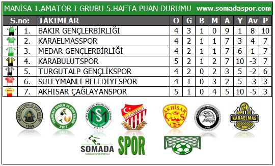 Karaelmasspor bu sonuçla puanını 7'e çıkarıp ikinci sıraya yerleşirken 6 puanda kalan Turgutalp Gençlikspor 5.sıraya geriledi. Karaelmasspor haftaya puanı bulunmayan Süleymanlı Belediyespor ile karşılaşacak. Turgutalp Gençlikspor ise 10 puanla zirvede yer alan Bakır GB'nin konuğu olacak.