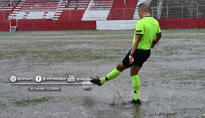 Manisa 1. Amatör Lig Akhisar Grubu'nda oynanan Turgutalpspor ile Süleymanlı Belediyespor karşılaşması, yoğun yağmur engeline takıldı.