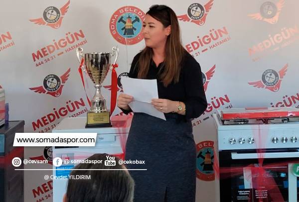 2021-2022 sezonunda takıma önemli katkılar sağlayarak birinci lige çıkmasını sağlayan ve aynı zamanda kulübün ana sponsoru olan Medigün Sağlık Grubu Yönetim Kurulu Başkanı Bekir Kotan’da bir konuşma yaptı. Bekir Kotan ”Özellikle kız çocukları için yapılan projeleri çok önemsiyoruz. Bu projeye başladıkları günlerde tanıştığım kulüp yönetiminin yapmak istedikleri ile ilgili heyecanını ve azmini gördüm. Elimizden geldiğince destek olmaya çalıştık, destek olmaya devam edeceğiz. Kızlarımız için kim bir verirse biz on mislini vermeye hazırız. Yeter ki kızlarımız bir yere gelsin.” dedi. Soma Kaymakamı Fatih Akkaya tarafından desteklerinden dolayı Bekir Kotan’a da plaket takdimi yapıldı.