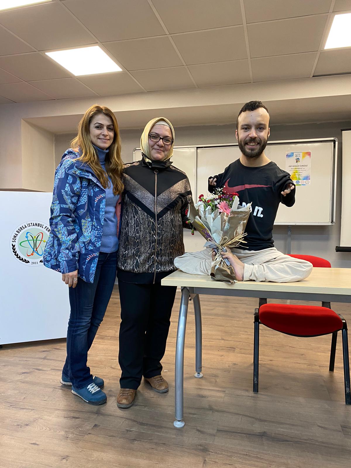 Milli Yüzücü Sefa Yurtkölesi, Soma Borsa İstanbul Fen Lisesi’in konferans salonunda öğrencilerle buluştu.