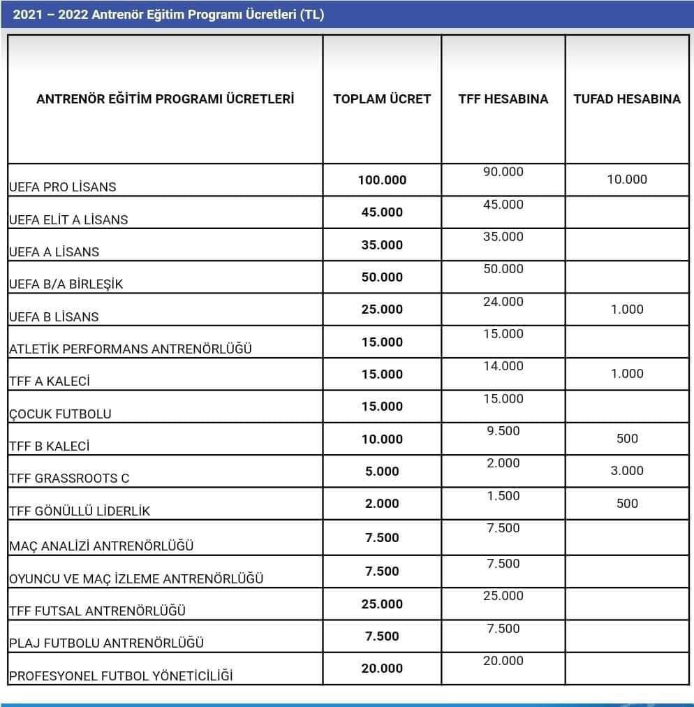 Türkiye Futbol Federasyonu, 2021/22 futbol sezonu yeni Antrenör Lisans Kurs ve Sertifika ücretlerini belirledi.