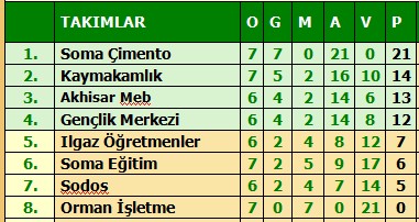 Kaymakamlık Voleybol Turnuvasında son hafta ilk gün maçlarında Soma Çimento ve Sodos galip geldi. Lider Soma Çimento grup aşamasını namağlup tamamladı.